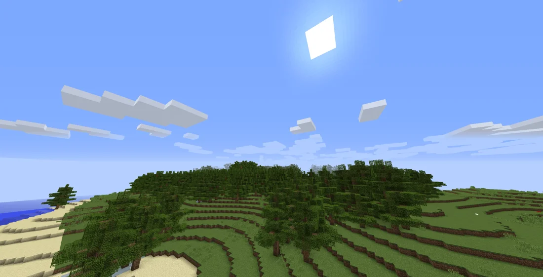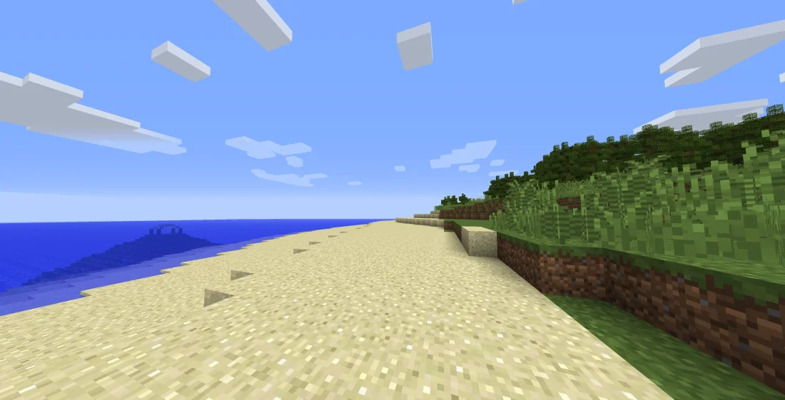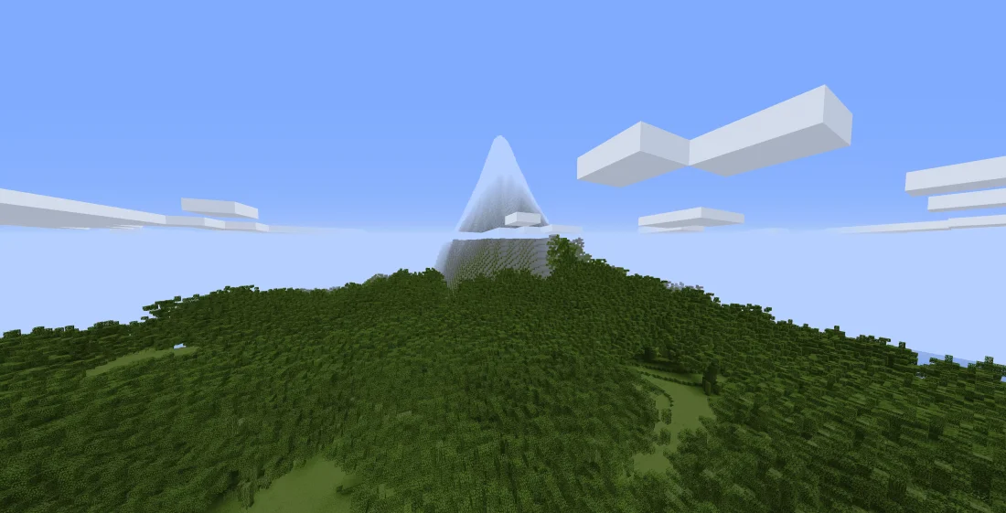 Необитаемый остров в Minecraft - один большой массив суши с гигантским вулканом в самом центре: лес густо покрывает территорию, а по периметру тянутся светлые пляжи с видом на море. Лаконичный, но выразительный ландшафт задаёт понятный ориентир и сразу приглашает к исследованию - от подножия вулкана до спокойной кромки берегов.