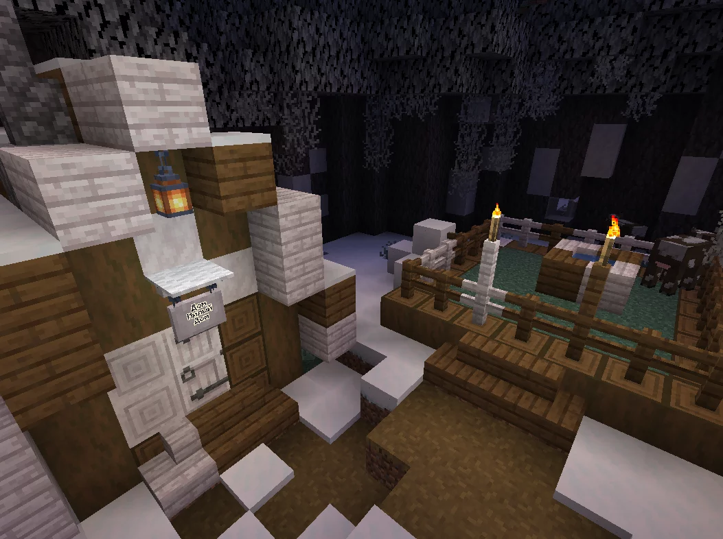 Дом Милый Дом уединён среди привычной деревни, отделённый бледным забором, словно границей между обыденностью и чем-то необычным. Из под покосившихся досок забора пробивается бледный дуб, его ветви оплетают стены дома, придавая строению вид, будто оно само стало частью деревьев. По бокам от здания стоят скрипуны, их безмолвные силуэты как будто следят за каждым шагом посетителей, создавая лёгкую нотку тревоги.