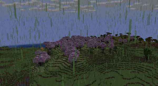 Toxicity превращает привычные дожди в опасные кислотные ливни: любая непогода теперь наносит урон как вам, так и оказавшимся под небом мобам. Спастись можно в броне, но постоянное воздействие разъедающих капель постепенно разрушает её прочность, так что каждое выбегание под дождь становится реальным риском.