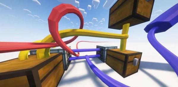 Уже с первых мгновений становится понятно, что Curvy Pipes разблокирует не просто очередные трубы в мире Minecraft - изогнутые, плавные конструкции без привычной блочной сетки, позволяющие разместить их под любым углом, внутри одного блока, создавая невероятно гибкие и органичные трассы. Благодаря реалистичной коллизии, по таким трубам могут легко передвигаться игрок и мобы, превращая функциональные объекты в часть архитектурной гибкости. Эти трубы умеют транспортировать как предметы, так и жидкости, работая в разных режимах - по сути, это продуманное инженерное решение.