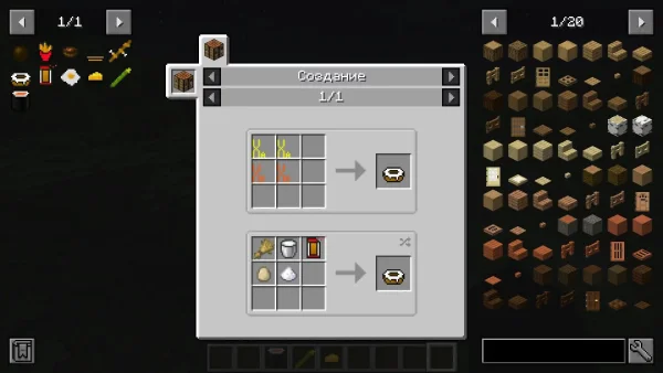 Но не только кухня: мод добавляет атмосферу приключений и неожиданных находок. В океане появляются маленькие и большие острова; на равнине - фермы и заброшенные поля пшеницы; среди гор - небольшие домики с грядками; в лесах - таинственные стеши - каменные кирпичи с факелами. И наконец, кокосовая броня, балансирующая между железной и алмазной по прочности, создаёт изюминку в экипировке.