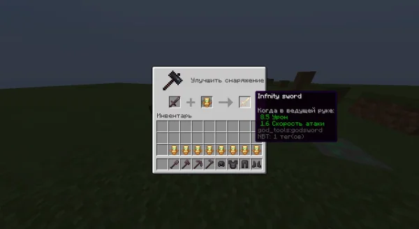 Infinity tools and armor преображает знакомые незеритовые вещи, позволяя при помощи тотема и кузнечного стола не просто усилить их, но и подарить им непревзойдённую долговечность - они приобретают улучшенные текстуры, становятся мощнее и абсолютно не ломаются.