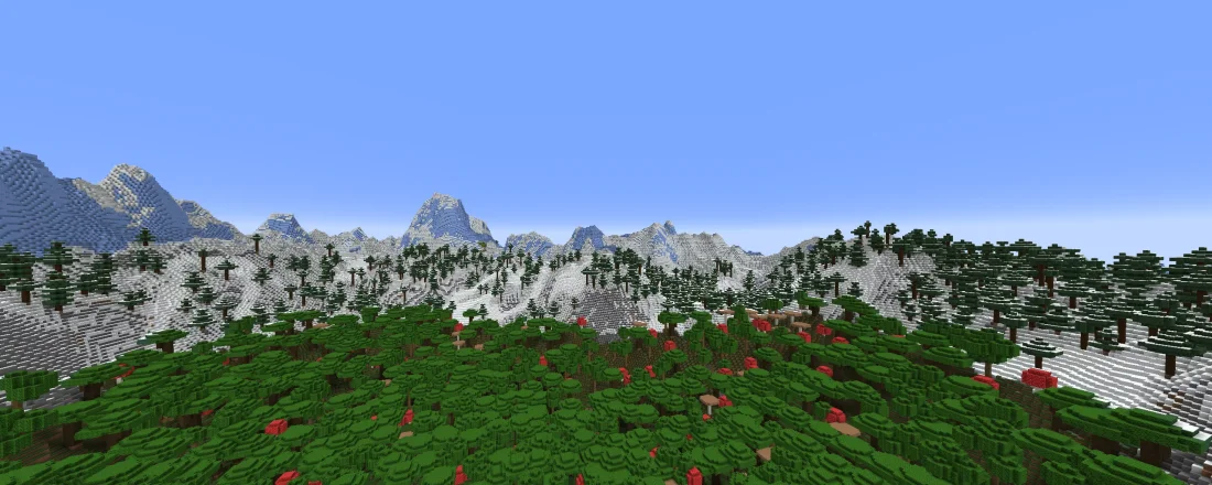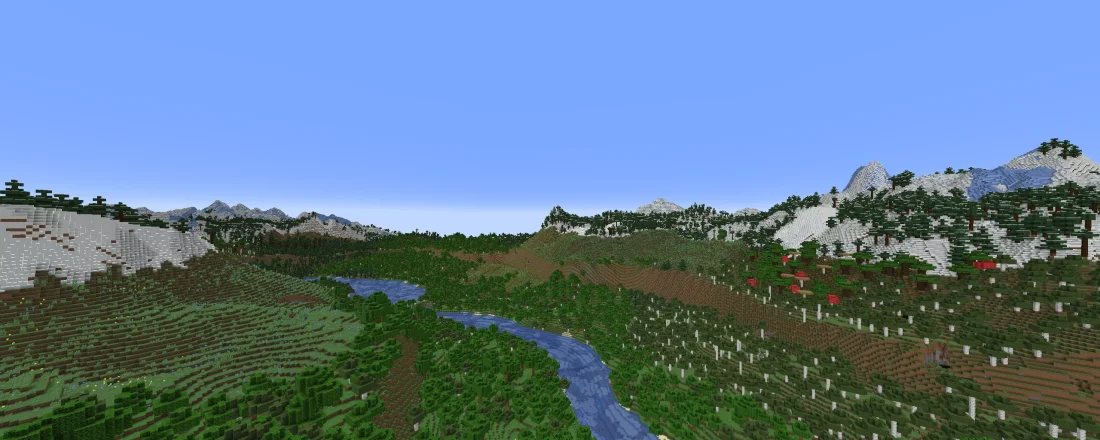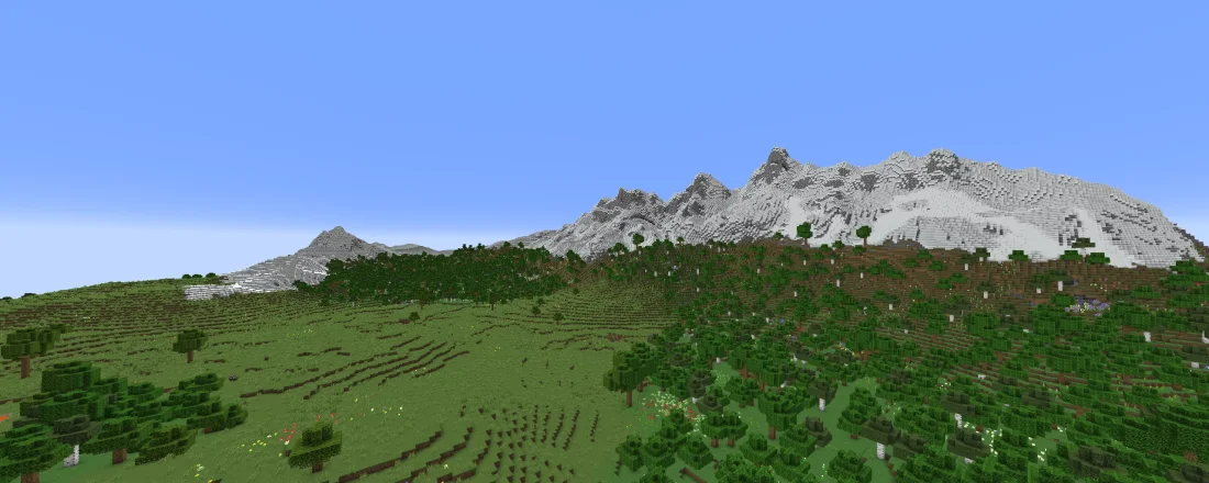 - Горные хребты теперь звучат иначе: они не просто возвышаются, а формируют величественную рамку для всего мира, заменяя стандартные горные биомы.
