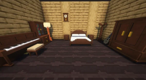 Farmhouse Decorations наполняет ваш Minecraft-мир уютом старинного дома, добавляя разнообразную антикварную мебель: от величественных кроватей и шкафов до атмосферы каминной гостиной с лампами, часами-кукушками, декоративными инструментами и пианино.