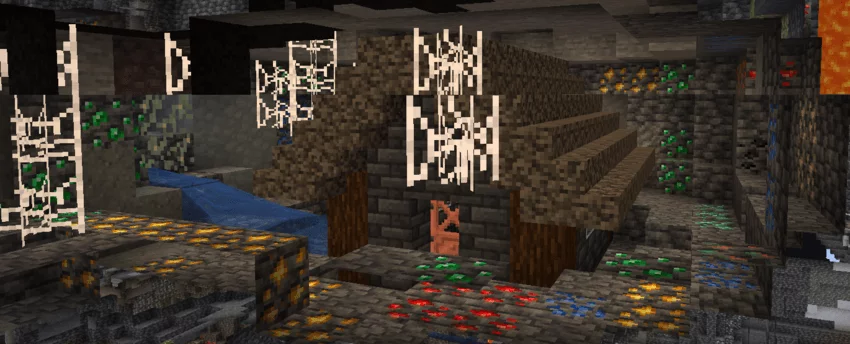 Ashfall преображает подземный мир Майнкрафта добавлением элегантных улучшений, не нарушающих ощущения ванильной игры. Вместо привычных пустых коридоров пещер появляются новые породы камней, придающие ландшафту глубину и разнообразие, а вдали мерцают остатки ушедших искателей приключений - скелеты, давно оставленные прошлым поколением шахтёров.