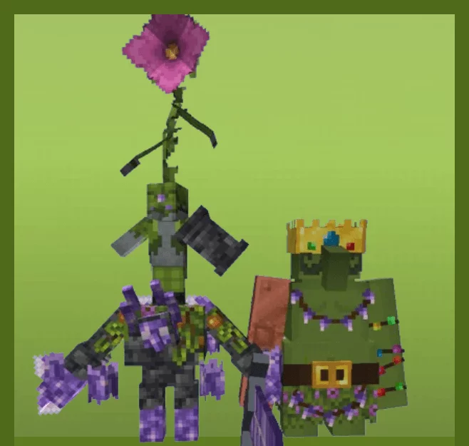 Lush Rush пробуждает к жизни мир пышных пещер, добавляя в них невероятное разнообразие контента: таинственные пышные храмы, скрытые среди свисающих лиан и светящихся грибов, а ещё новые виды врагов - от зловредов до хитроумных гоблинов. Каждое углубление в сеть этих пещер обещает поражающие столкновения с боссами, испытания на ловкость и смекалку, а так же возможность раздобыть необычное снаряжение, способное кардинально изменить стиль выживания в Minecraft.