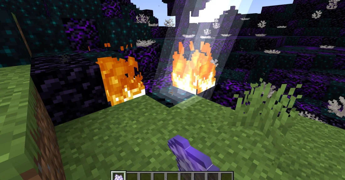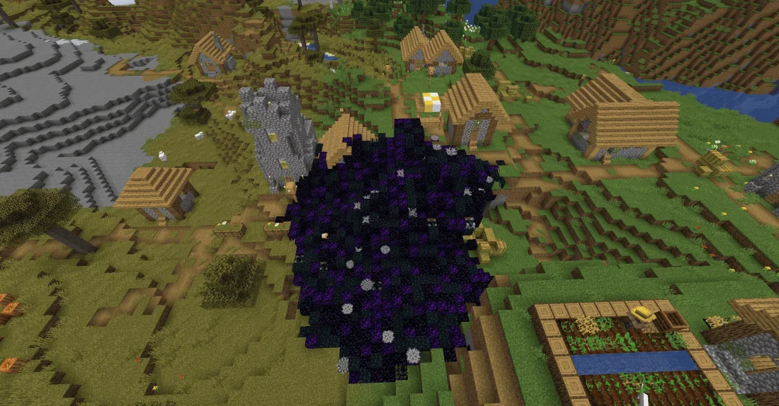 - Заражённый обсидиан постепенно преображает окружающие блоки, создавая реалистично выглядящий бесплодный ландшафт.