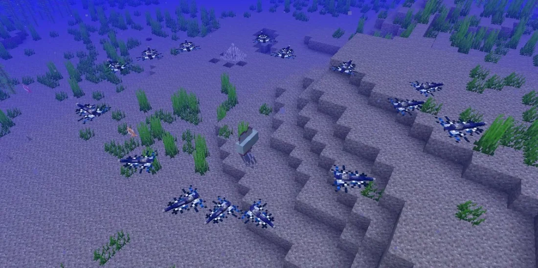 fapdos’ Aquatic Additions привносит в уже знакомые водные биомы множество новых морских элементов: от разнообразных видов рыб до тематических блоков и растений. При погружении в океан теперь можно встретить медуз, крабов, касаток и мурен, а среди подводных декораций появятся жемчужины, ракушки и коралловые растения, оживляющие морское дно.