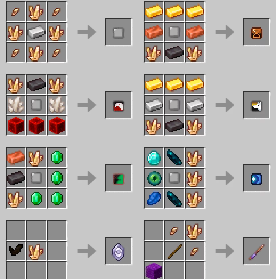 - Встречается в виде руды в Энде, которую можно добыть и получить несколько крупиц.