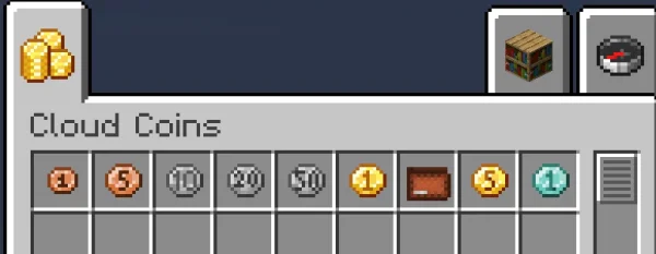 CloudCoins добавляет в игровой мир новую экономическую систему с монетами различных номиналов и специальным кошельком, помогающий хранить денежные единицы в упорядоченном виде. Геймеры могут подбирать монеты, выпадающие с мобов, а затем объединять их на верстаке, чтобы получить более крупные купюры и оптимизировать своё виртуальное богатство.
