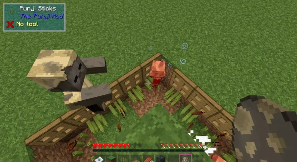 Punji привносит в мир Minecraft смертоносный блок из заострённого бамбука, способный наносить урон любым сущностям, вступающим с ним в контакт. Этот блок легко впишется в защитные конструкции, позволяя пользователям эффективно расправляться с нежелательными мобами на фермах.