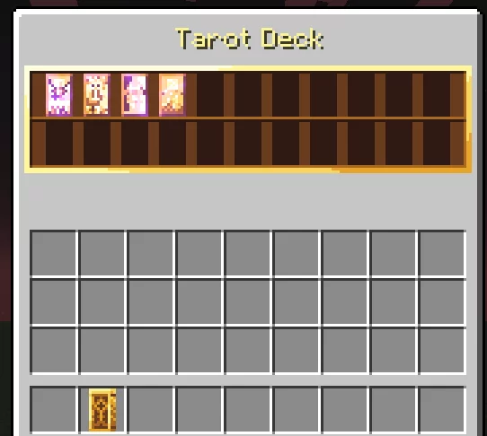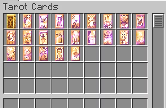 На этой странице можно скачать мод Tarot Cards для всех версий MC на ПК. Если дополнение не работает, сообщите нам об этом в комментариях, постараемся разобраться!