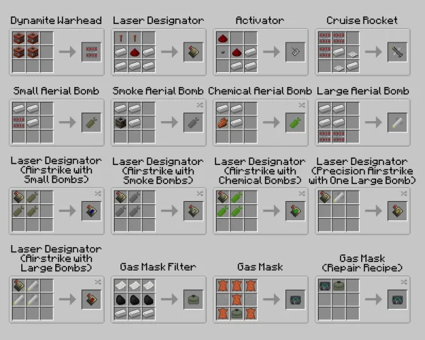 Airstrike открывает новые функции ведения войны в мире Minecraft: с точным лазерным целеуказателем вы сможете сбрасывать массивные разрушительные бомбы и выпускать стратегические дымовые заряды, обеспечивая контроль над любой территорией. Мод предоставляет крылатую ракету, которую можно направить в нужное место, чтобы поразить врагов с большого расстояния и увеличить тактическое преимущество на поле боя.