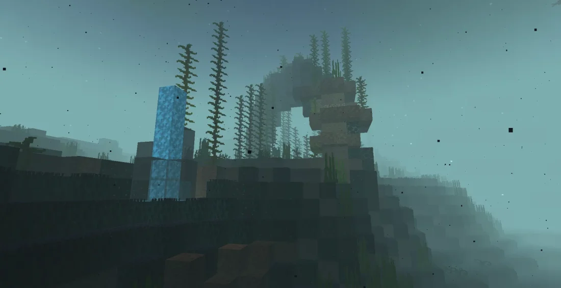 - Deep Dark Ocean - тёмный океан с блоками, напоминающими скалк, и загадочным морским светильщиком;