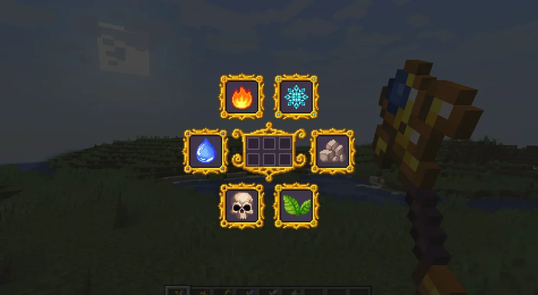 Auric Arcanum - магический мод, привносящий в Minecraft уникальную механику синергии стихий. В отличие от традиционных магических систем, здесь игроки могут комбинировать шесть элементов: огонь, лёд, камень, жизнь, смерть и вода, создавая тем самым разнообразные заклинания с разными эффектами. Например, сочетание огня и воды может привести к созданию пара, а комбинация жизни и смерти - к мощным разрушительным атакам.