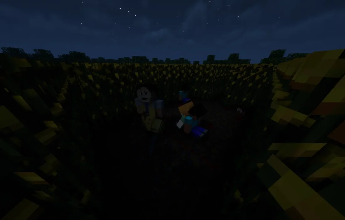- Жуткая атмосфера: коридоры из кукурузы, создающие ощущение безысходности;