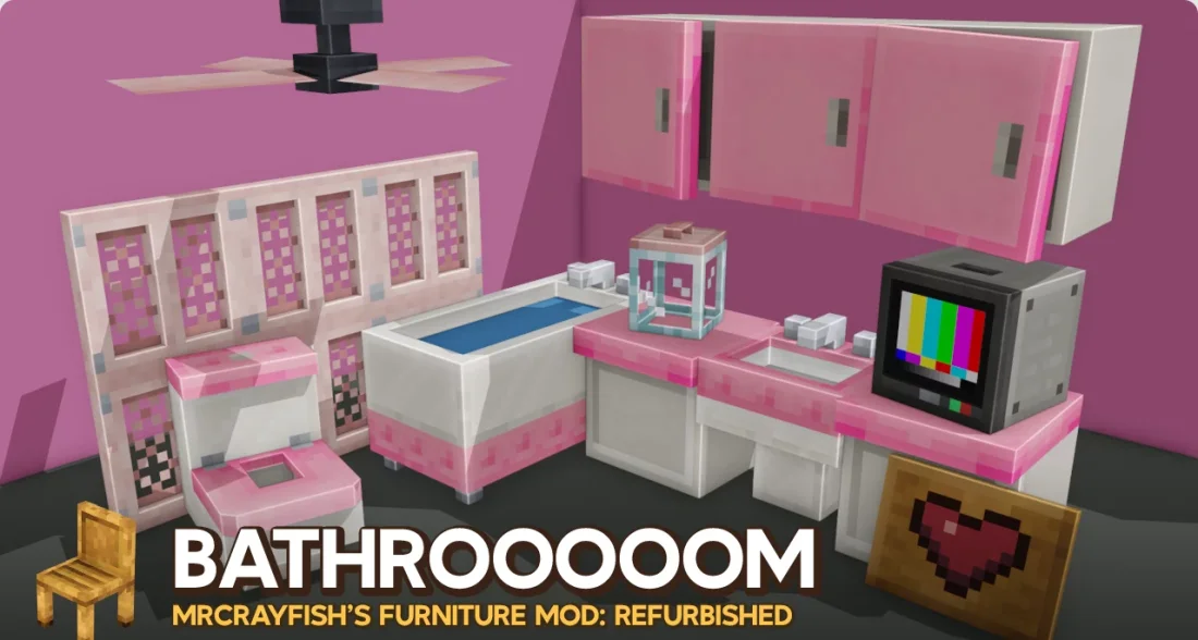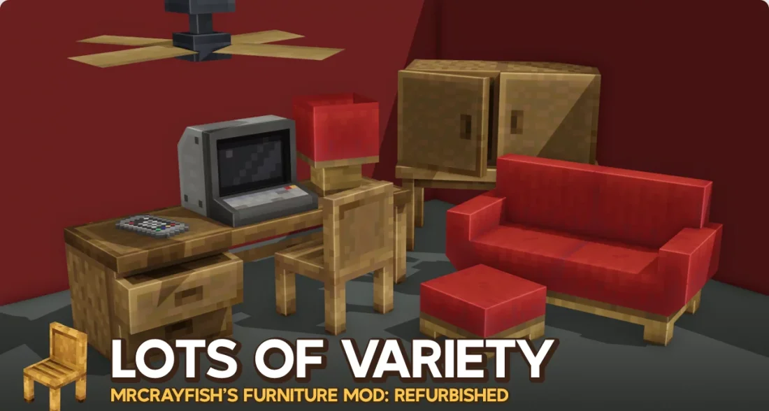 MrCrayfish's Furniture: Refurbished - обновлённая версия культового мебельного дополнения, полностью созданная с нуля и передающая знакомое очарование оригинала. Здесь всё переосмыслено: новые блоки, свежие модели, проработанные звуки и переработанные игровые механики, которые превращают обустройство жилища в полноценный геймплей.