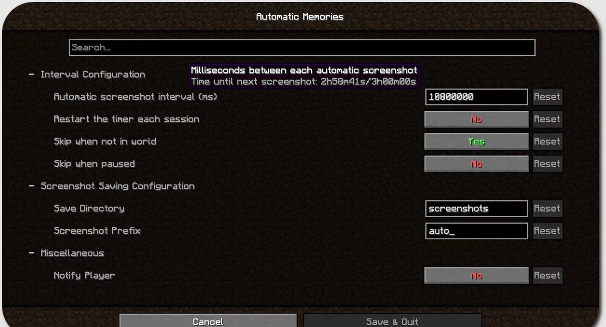 AutomaticMemories периодически делает снимки экрана, словно запечатлевая случайные моменты ваших приключений в Minecraft - будь то рассвет над новым биомом, неожиданная встреча с мобом или просто ваш дом в свете заката. Возможность настроить частоту снимков и параметры хранения позволит превратить игру в фотолетопись - так, возвращаясь спустя время, вы словно перелистываете альбом с переживаниями и вдохновляющими кадрами.