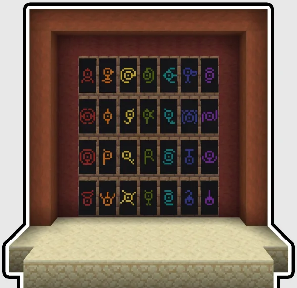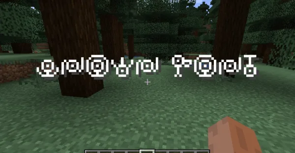 Unown Font добавляет в игру шрифт, вдохновлённый загадочной письменностью покемонов Аноун, и позволяет использовать его везде, где принимается json-текст: в названиях предметов, подсказках, книгах и на табличках. Символы шрифта аккуратно встраиваются в стандартные элементы интерфейса, так что оформить мир под необычный алфавит можно без сложных манипуляций.